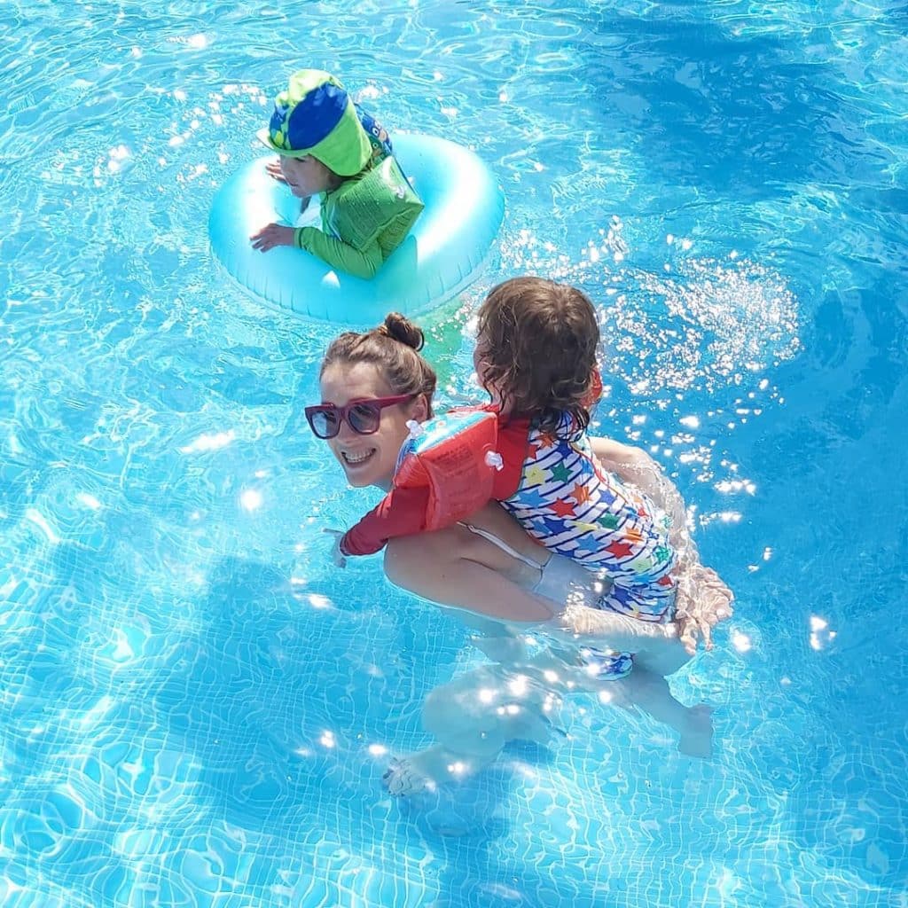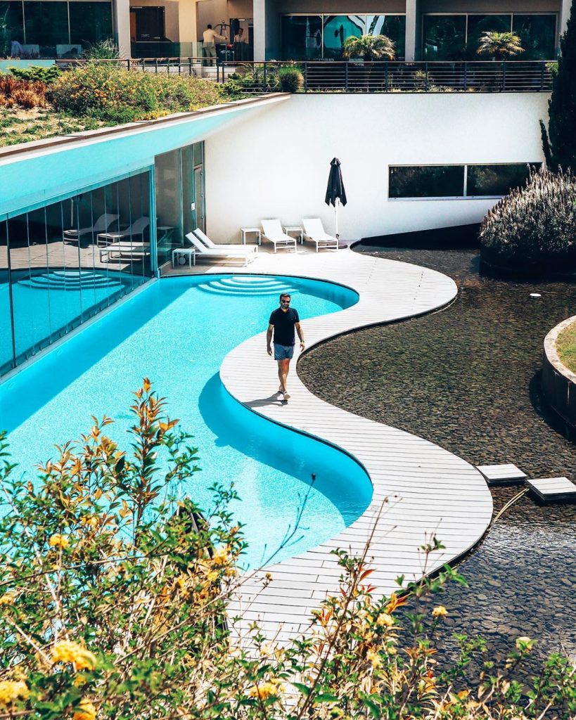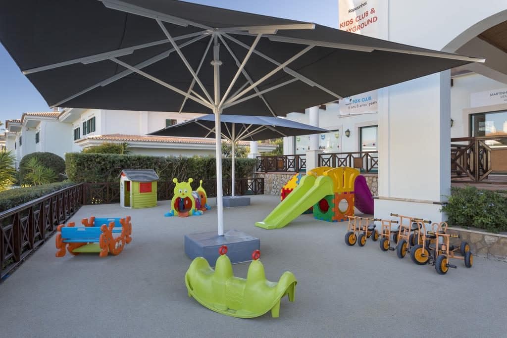 Piscina partilhada (que será aquecida a partir da Páscoa), com o famoso trampolim Martinhal, que as crianças adoram, escorregas de água, uma VW “Pão de forma”, o Blue Room e o nosso Raposinhos Kids Club.