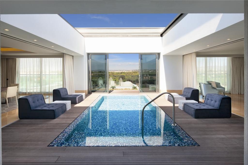 O hotel 5 estrelas mais luxuoso do Algarve. Todos os quartos e suites do Hotel Conrad combinam um design contemporâneo com tons de cinzento. Os quartos têm acesso a Wi-Fi gratuito, TV e casa de banho em mármore