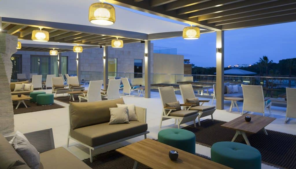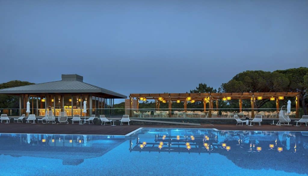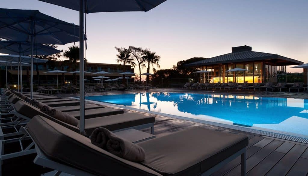 Salas de reunião o Centro de Congressos atingem a dimensão de 1.800 m2 que para congressos e eventos já é uma referência. O Hotel ocupa uma área de 8 hectares de pinhal junto à praia Praia da Falésia em Albufeira.