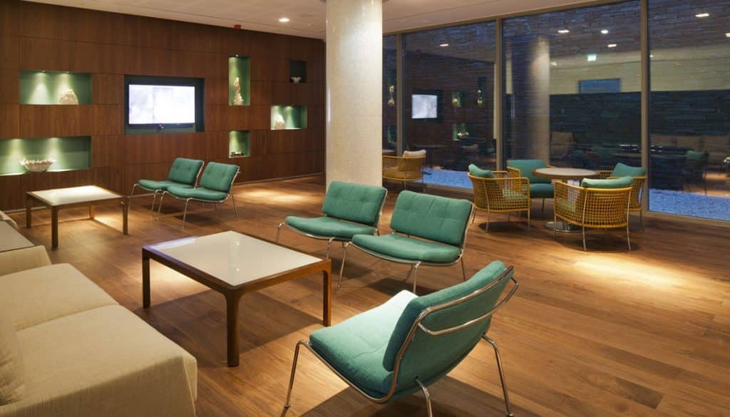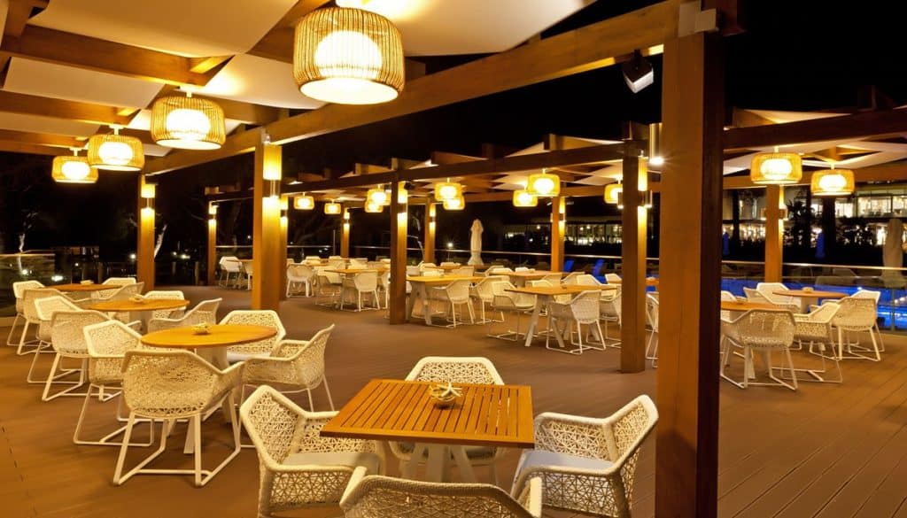 Salas de massagem e estética, 2 tendas e um pavilhão no exterior e jacuzzi privado, estão também disponíveis uma sauna, banho turco e uma piscina interior e ginásio com modernos equipamentos. O hotel dispõe de 4 restaurantes e 2 bares.