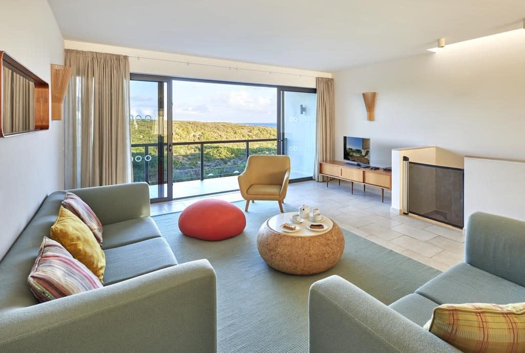 As varandas privadas dão para a principal atração do jardim – A Oasis Pool, uma piscina aquecida de formato original. As vistas alcançam ainda a área envolvente do resort e a natureza do reservado Algarve Ocidental.
