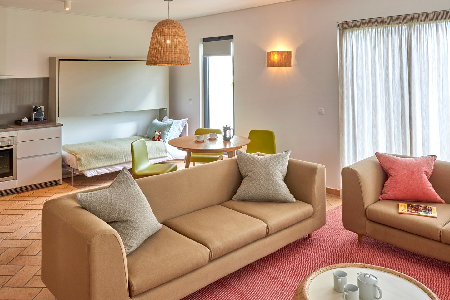 O designer de mobiliário e interiores britânico, Michael Sodeau, triunfou na combinação de mobiliário prático mas elegante. Materiais naturais foram utilizados – madeira, cortiça, vime a pedra de Monchique – criando um efeito acolhedor e orgânico.
