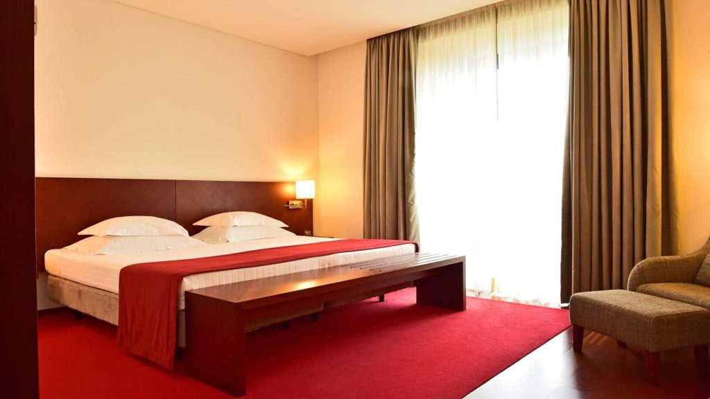 Quartos – Com cama de casal ou com 2 camas de solteiro – Piscina partilhada – Ar condicionado – Aquecimento – Pequeno almoço – Animais admitidos (custo adicional) – Spa – TV – Wi-fi – Receção 24 h –