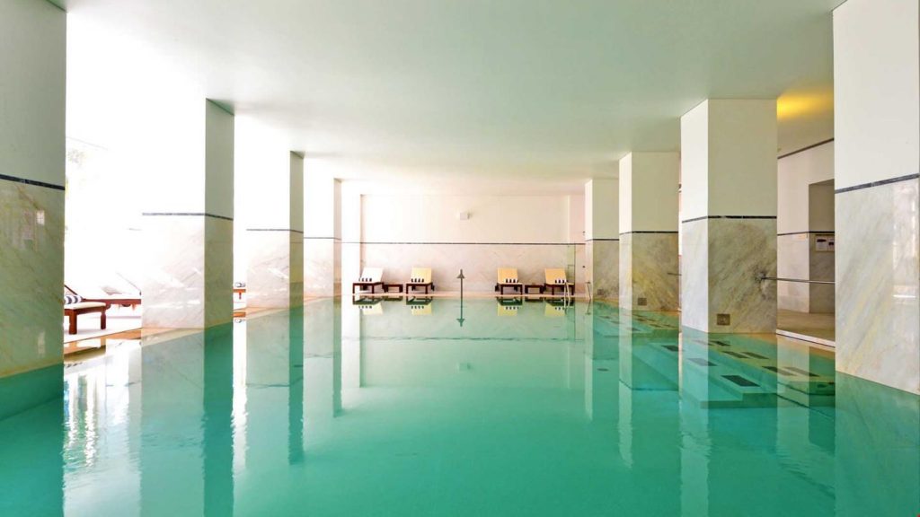 Existem 2 piscinas, 1 interior com água aquecida e outra no exterior para os dias de verão, um spa, restaurante à la carte com menus variados, bar, salas de convívio e ginásio