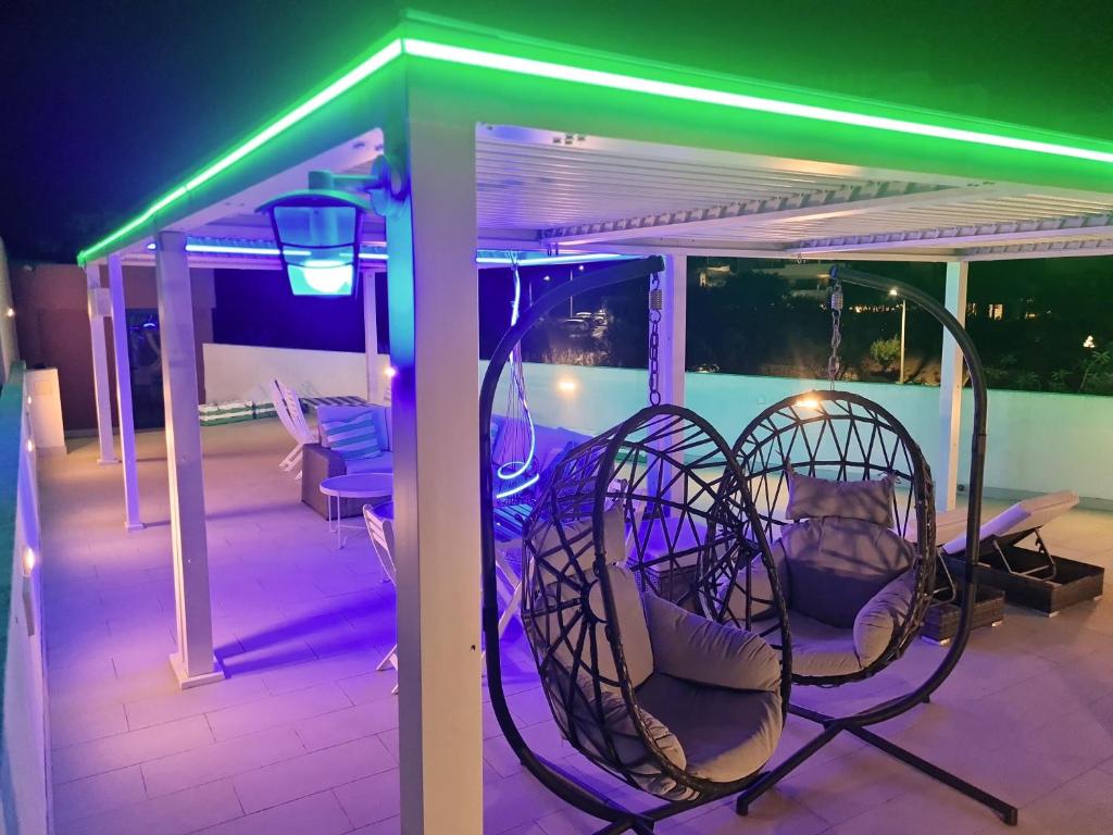 - Piscina: Um dos destaques é a piscina exterior, rodeada por um jardim e espreguiçadeiras com guarda-sóis, ideal para relaxar e apanhar sol. Há também uma “área de piscina” que pode incluir uma piscina menor ou zona de hidromassagem.