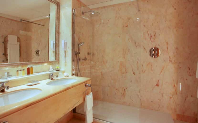 As casas de banho estão equipadas com aquecedores de toalhas, secador de cabelo, com luz incorporada e outras facilidades. Os hóspedes têm ao seu dispor um roupão e chinelos.
